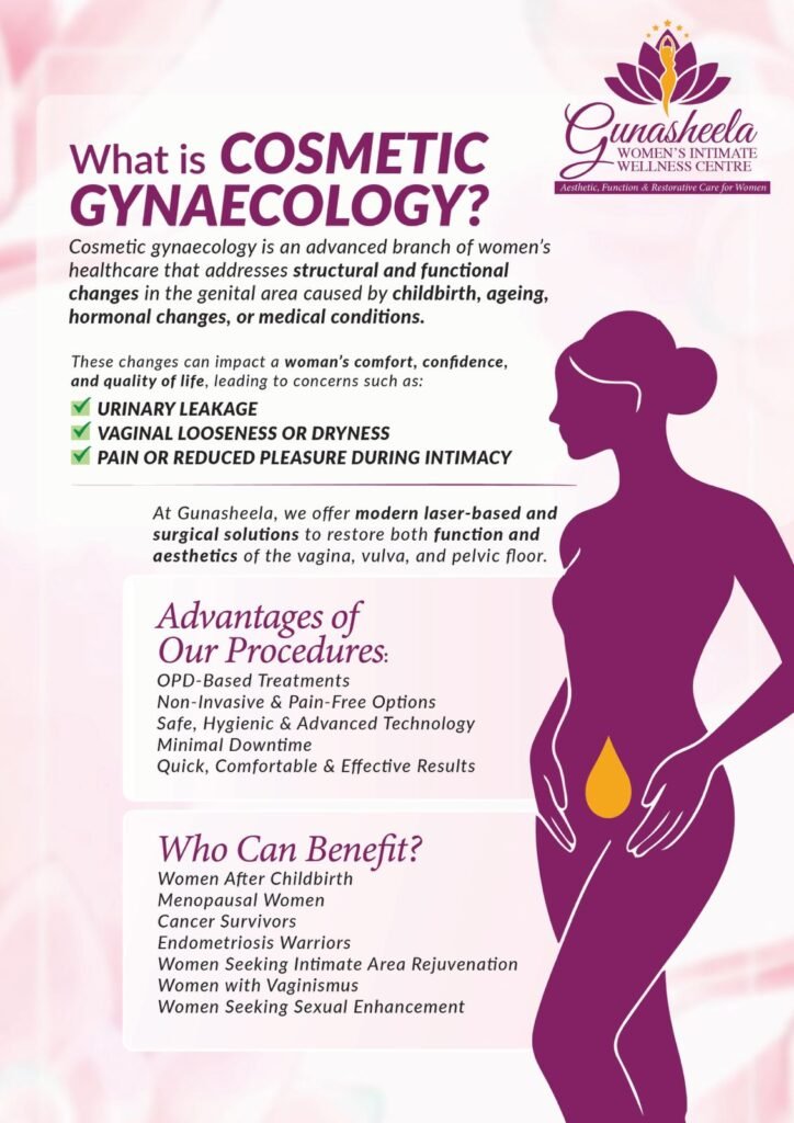 Cosmetic gynaecology is a specialized branch of women’s healthcare that focuses on improving the function, comfort, and appearance of the vaginal and pelvic area. It includes both non-surgical and surgical treatments for intimate wellness concerns.